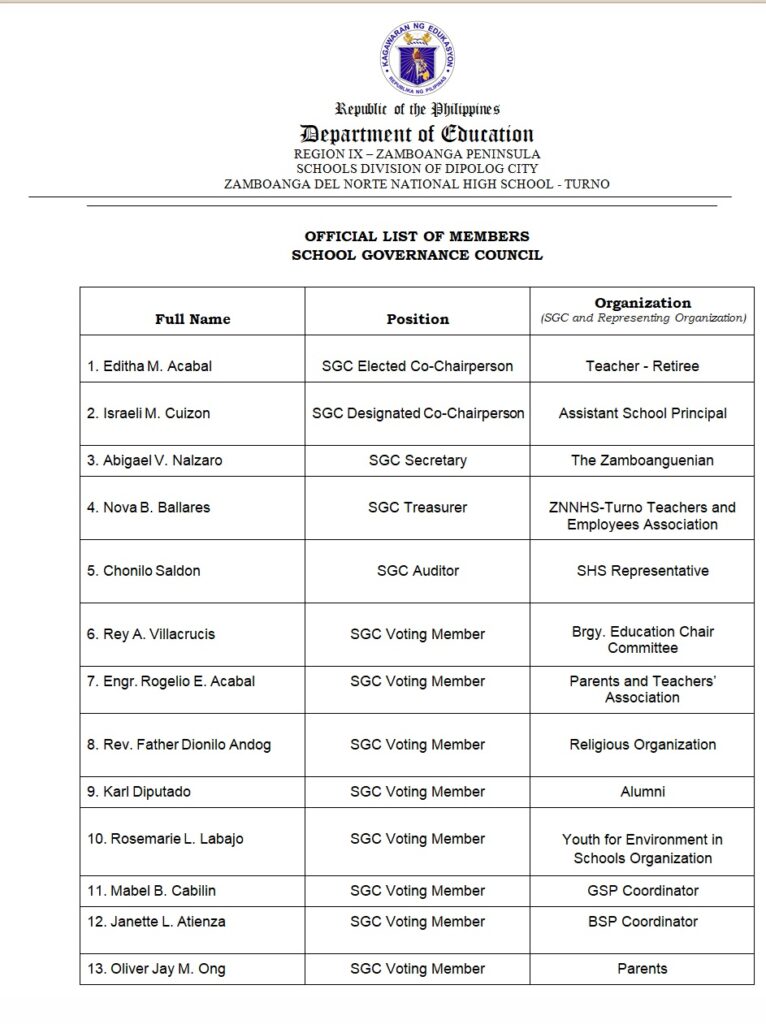 Empowering Partnerships; Strengthening Governance— Together for ZNNHS-Turno’s Brighter Future! SY: 2024-2025